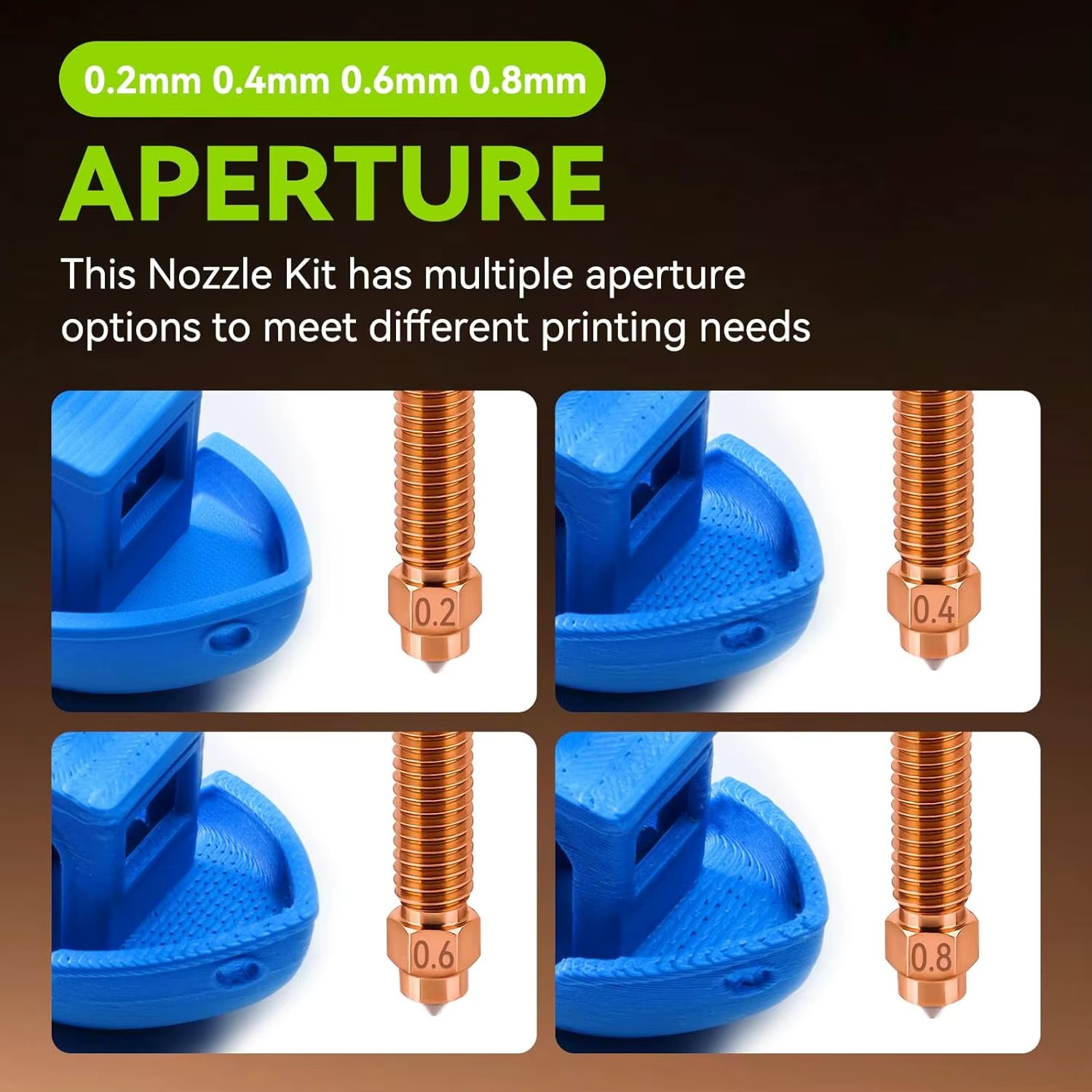 نازل در سایز انتخابی 0.2 / 0.4 / 0.6 / 0.8 میلیمتر