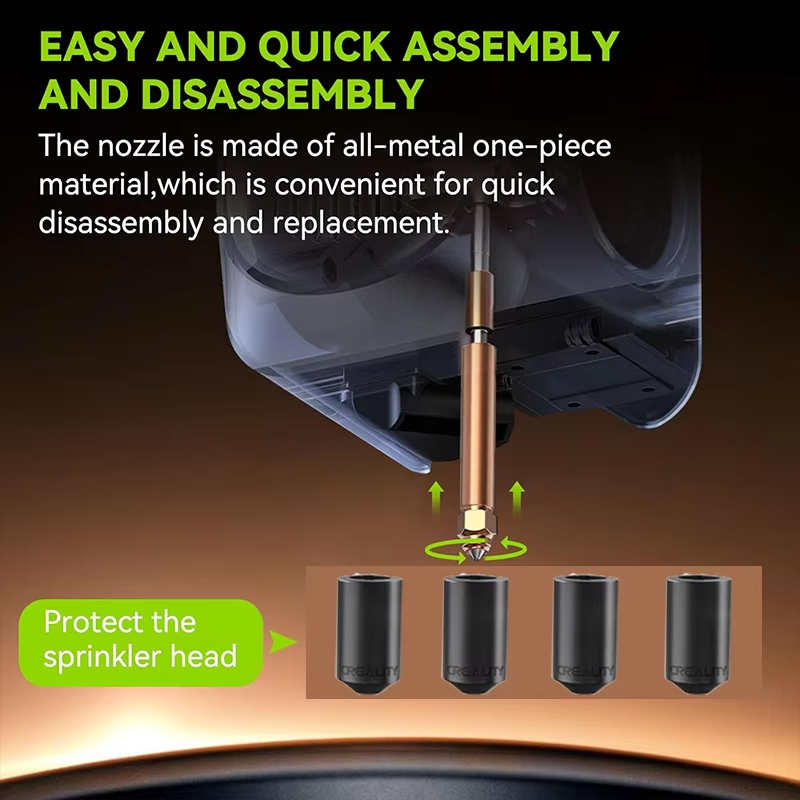 ساختار یکپارچه تمامفلزی باعث پایداری حرارتی بهتر، کاهش انسداد و افزایش طول عمر نازل میشود. این ویژگی بهخصوص در چاپ با فیلامنتهای ساینده یا دمای بالا اهمیت بالایی دارد.