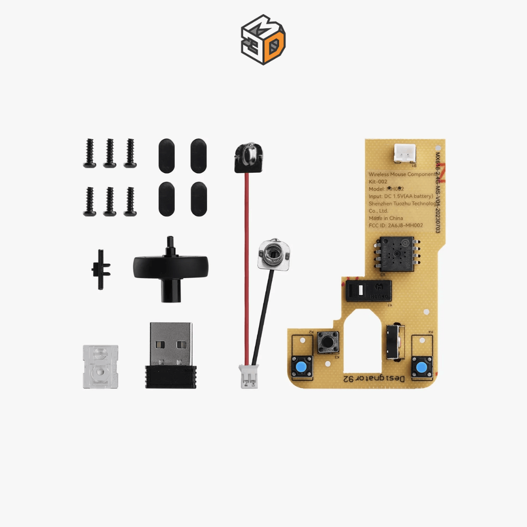 کیت موس شامل قطعات موس (قطعات الکترونیکی ) که با استفاده از پرینتر سه بعدی میتوان بدنه را پرینت کرد و با استفاده از این کیت تبدیل به یک موس وایرلس تبدیل کرد.